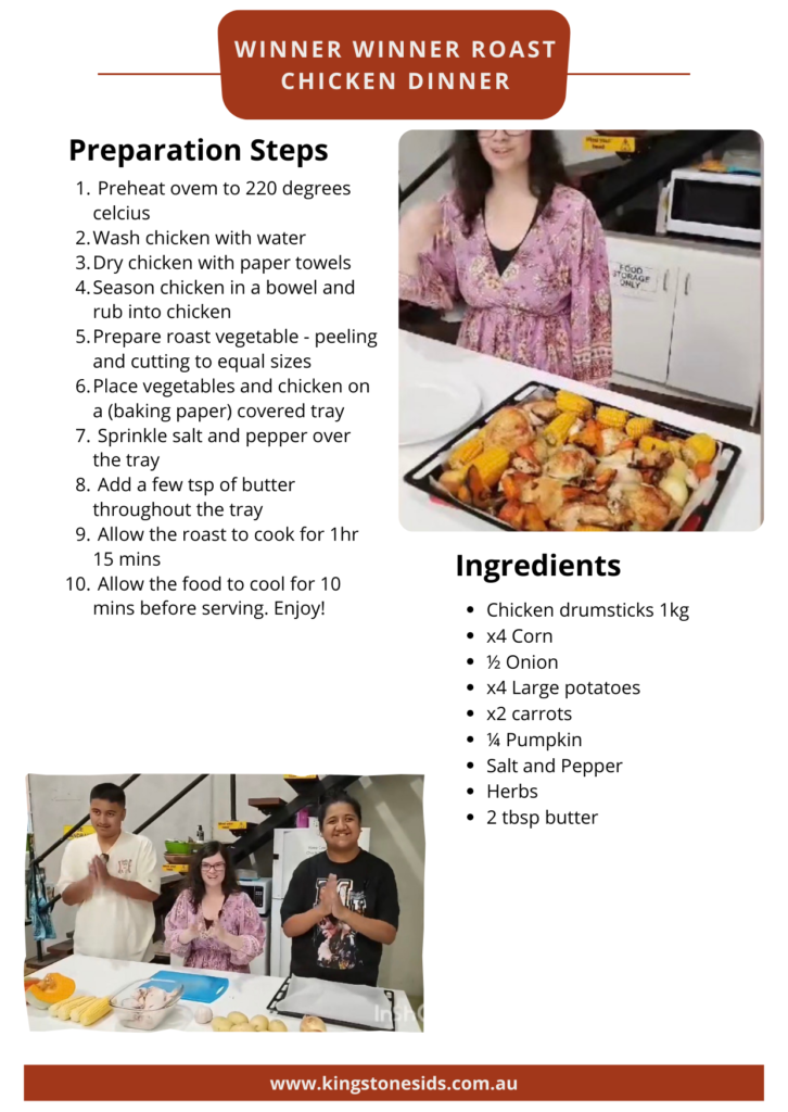 Welcome to the Kingstones Cook Book 2026. We are so excited to share with you a fun, easy and healthy cook book demonstrated by our wonderful team at Kingstones Innovative Disability Support. This cook book will provide for you an insight on our Health and Wellness Program during our day support service.
